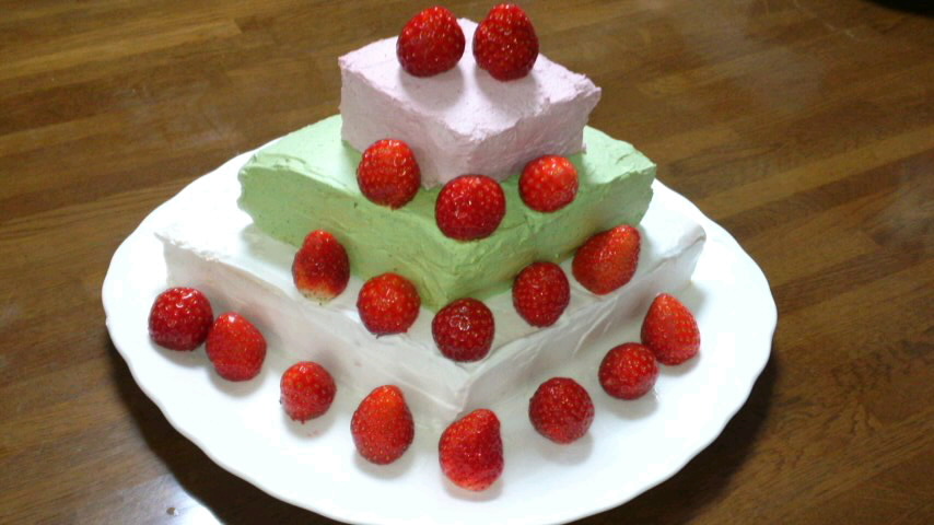 3月3日のひな祭りでは、菱餅型の3段ケーキ作りました(^_^)v